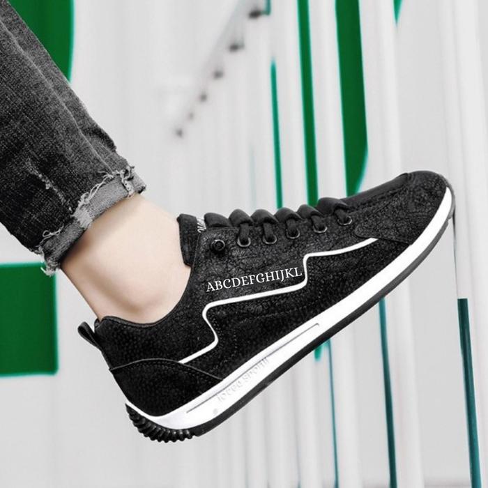SEPATU SNEAKERS TALI KARET MEXICO SLIP ON OLAHRAGA PRIA WANITA WARNA HITAM ABU CASUAL SHOES SPORT SNEKERS KASUAL - HITAM, 39