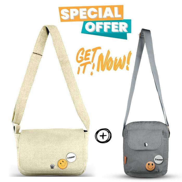 PUSHOPAUTHENTIC - BELI 1 DAPAT 2 TAS SELEMPANG CASUAL - PAKET CANVAS CORDUROY - KAZUKO+VIOR, SESUAI GAMBAR