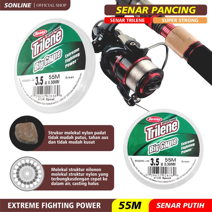 SONLINE Tali Pancing Nilon TRILENE 55m Putih Super Kuat Alat Ikan Laut Olahraga Reel - Trilene Putih 0.10