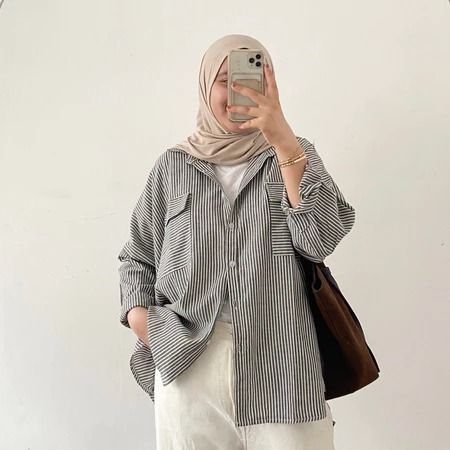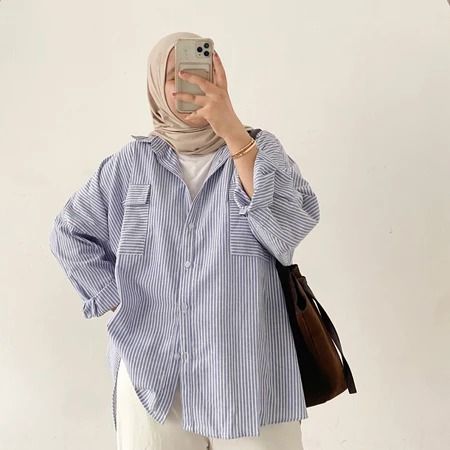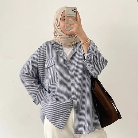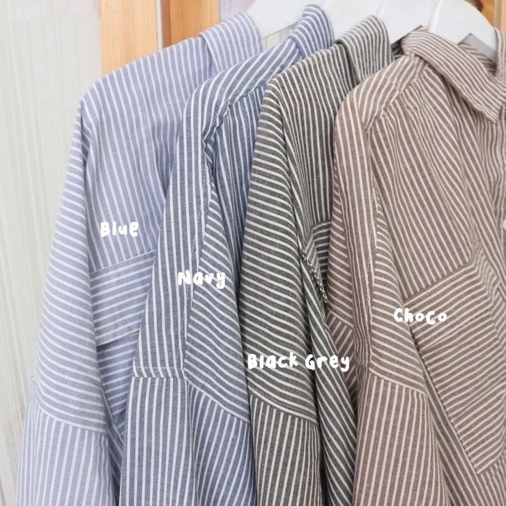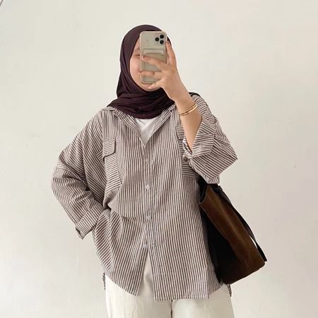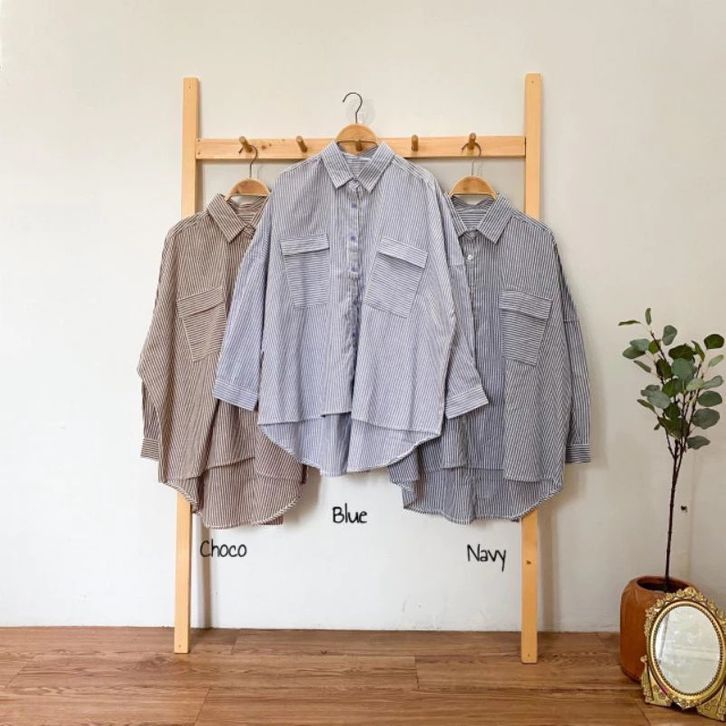 Aurellie Shirt Kemeja Salur Kemeja Pocket Salur Oversize Atasan Wanita Kekinian Kemeja Wanita Casual