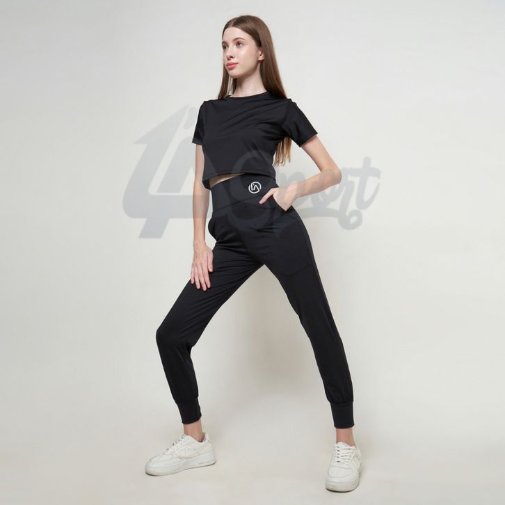 I'A SPORT Set Olahraga Atasan Crop Bawahan Jogger