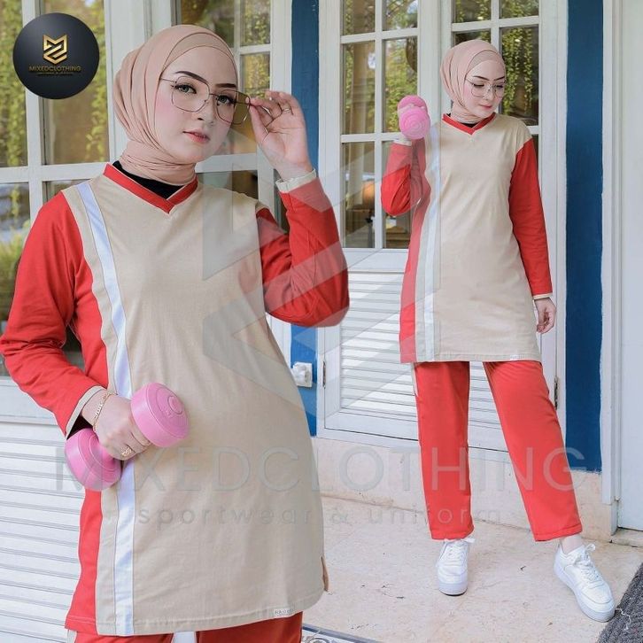 setelan olahraga muslimah tunik wanita/baju setelan olahraga/setelan senam muslim