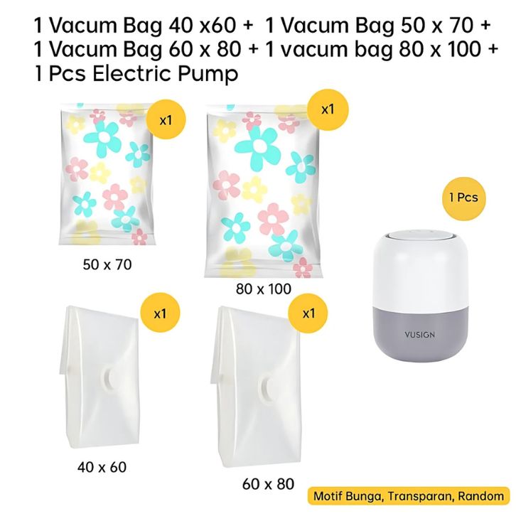 TERBARU Vusign Bundle Vacuum Bag / Vacum Plastic Bag Travel Berbagai Ukuran dan Pompa Elektrik Vacuum Kantong