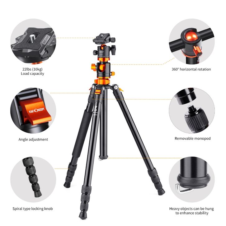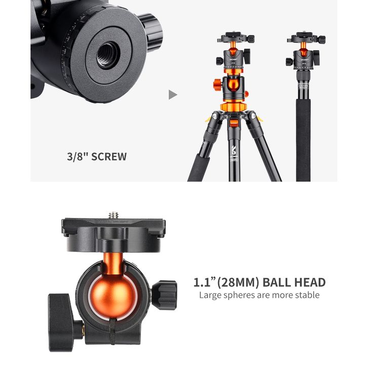K&F Concept Tri Kamera SA254T2 With Ballhead and Detachable Mono