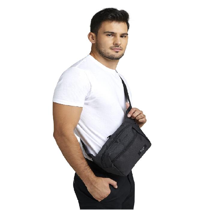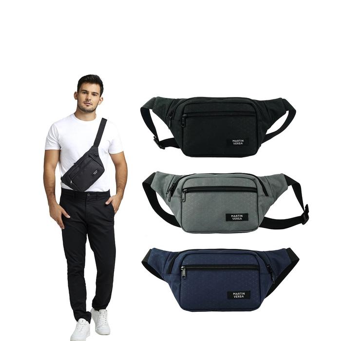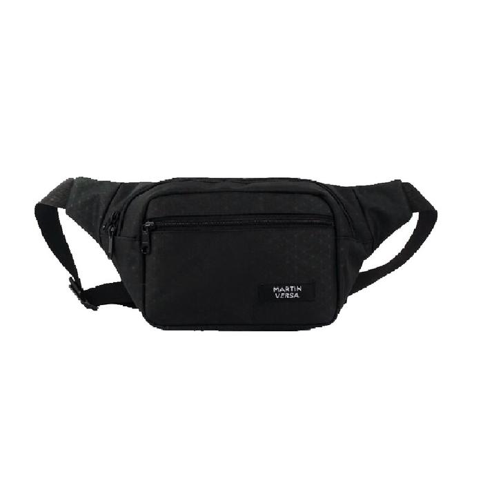 MARTINVERSA CH11 TAS SELEMPANG PRIA PINGGANG KANVAS PRIA COWOK WAISTBAG SLINGBAG - HITAM (BLACK)