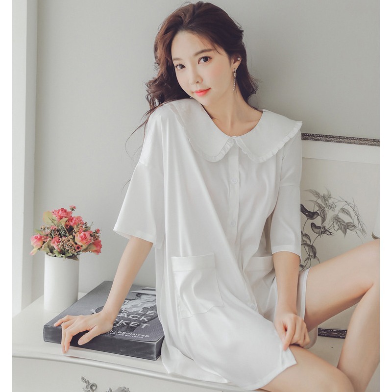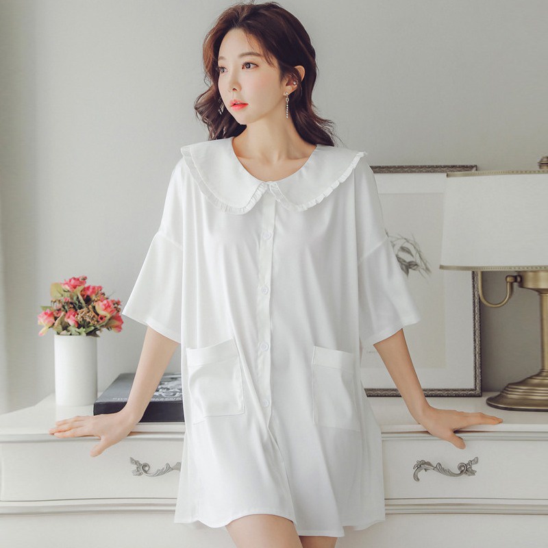RELAX HOME [] PIYAMA BAJU TIDUR PUTIH KEMEJA DRESS PANJANG SEXY BAHAN CHIFFON