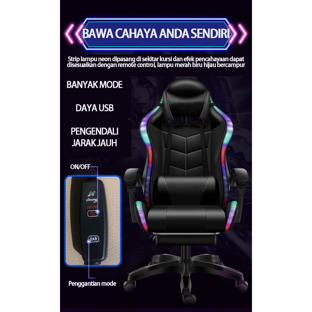 Kursi Gaming Pijat Lampu Led Kursi Rexus Kursi Gaming Untuk Gamer Profesional Kursi Santai Musik Istirahat