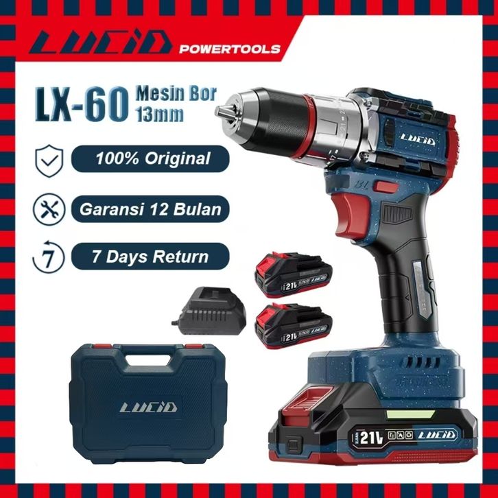 MESIN BOR BATERAI LUCID LX-60 CORDLESS 13MM 2.0A 21V LITHIUM BATTERY IMPACTDRILL BRUSHLESS BATERAI GRATIS ONGKIR