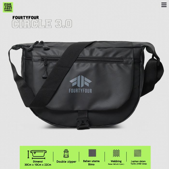 FOURTYFOUR CIRCLE 3.0 - TAS SELEMPANG PRIA WANITA CASUAL FOURTYFOUR CIRCLE - SLINGBAG CASUAL PRIA WANITA - BLACK