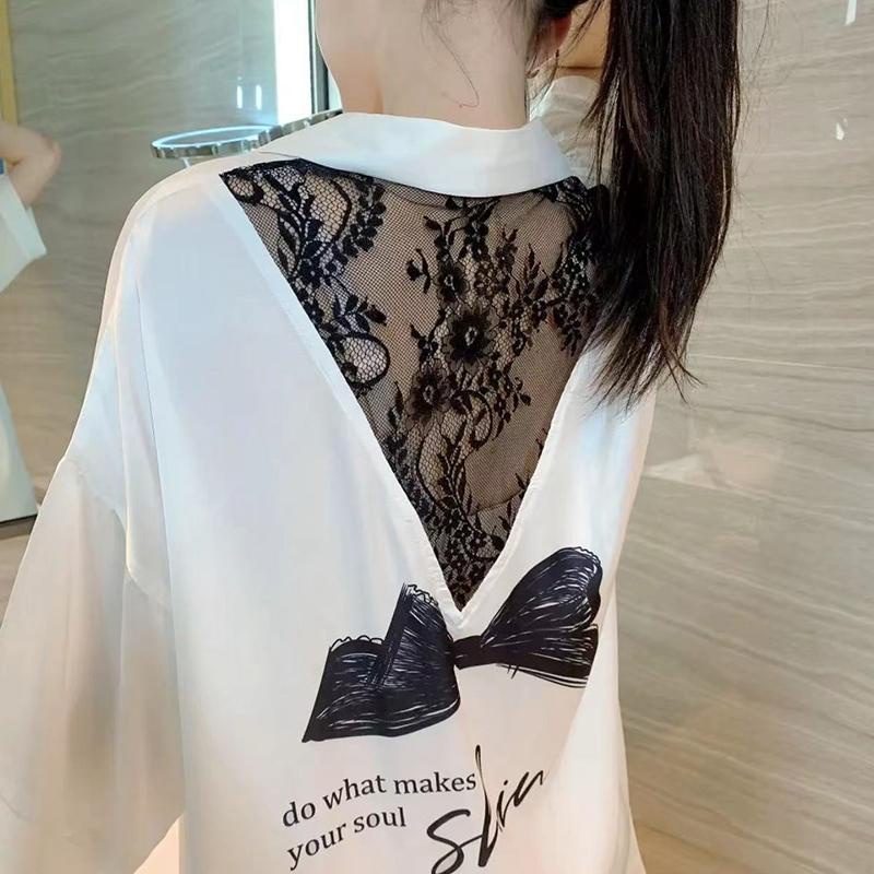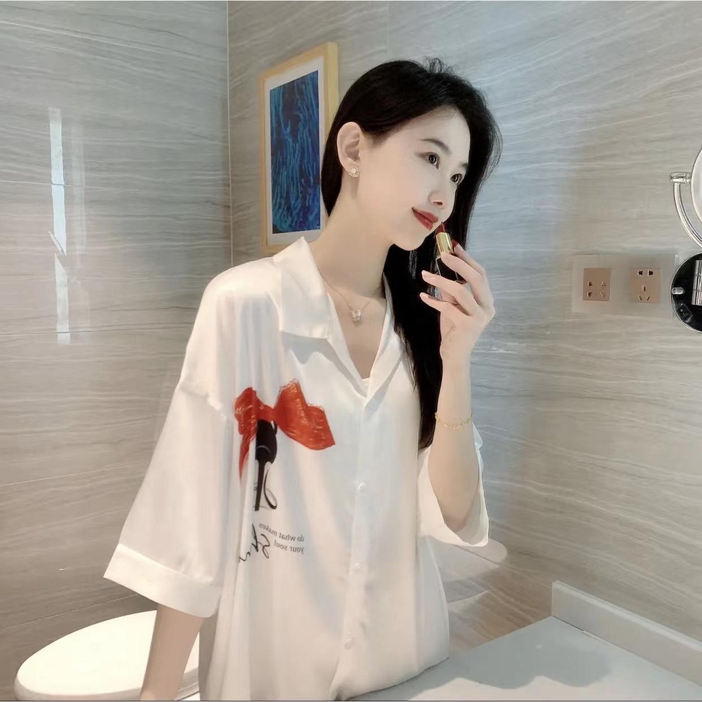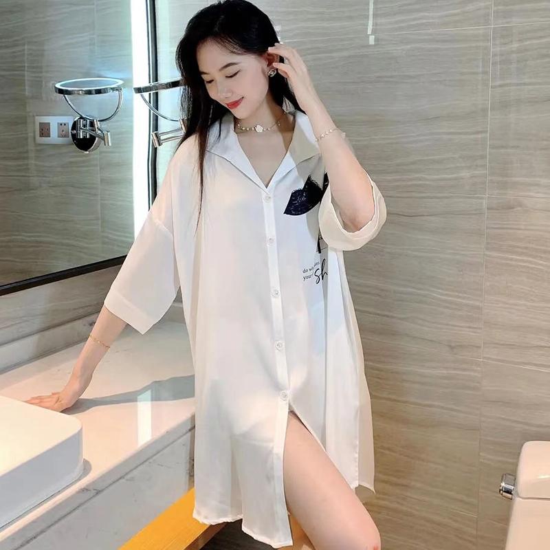 DRESS TIDUR KOREA WANITA JUMBO SUTRA ES BAJU TIDUR DRESS KEMEJA WANITA LONGGAR PAKAIAN RUMAH SEKSI
