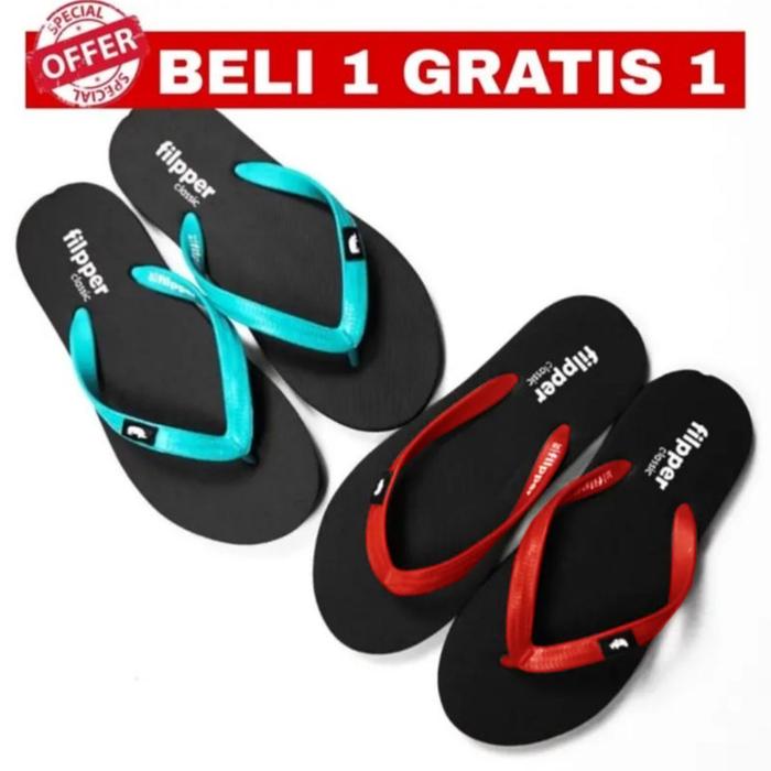 SANDAL JAPIT FILPER BELI 1 GRATIS 1 SANDAL JAPIT FIPPER CLASIK WANITA DAPAT 2 SANDAL JEPIT KARET COKLAT HITAM MERAH PUTIH FLIPPER FIPPER LENTUR COWOK CEWEK PRIA KASUAL - 2 PASANG (MERAH+HITAM), 38