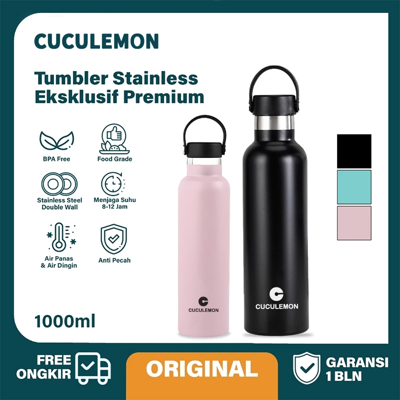 CucuLemon Tumbler Thermos Stainless Bottle Botol Air Minum Tahan Panas Dingin Vacuum Flask Termos Tumblr Sport 750ml 1000ml