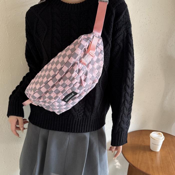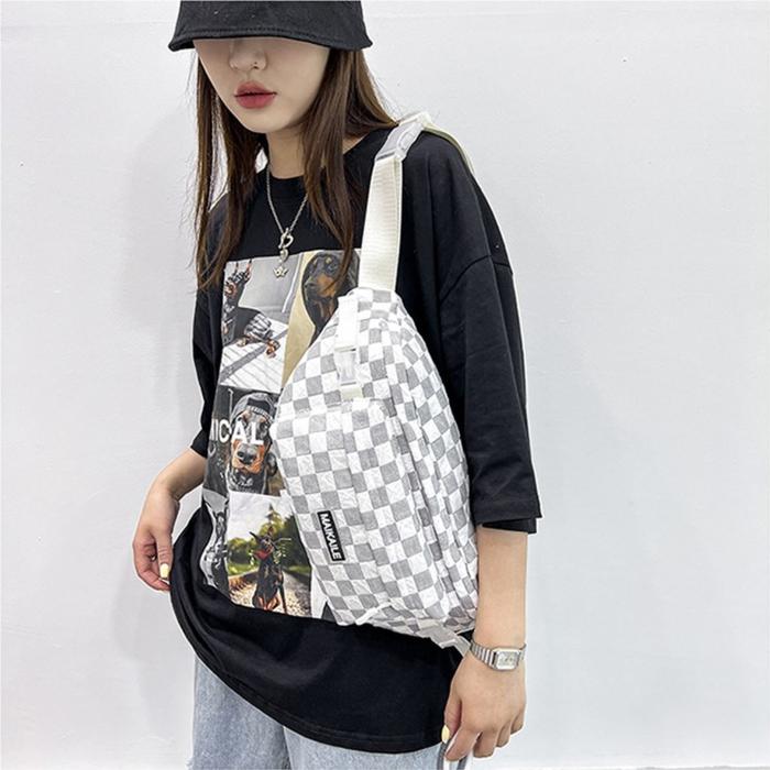 TSONG TAS KOTAK-KOTAK KASUAL JEPANG KAPASITAS BESAR TAS BAHU PRIA TAS SELEMPANG TAS FANNY NETRAL 2206 - HITAM(TIDAK ADA LIONTIN)