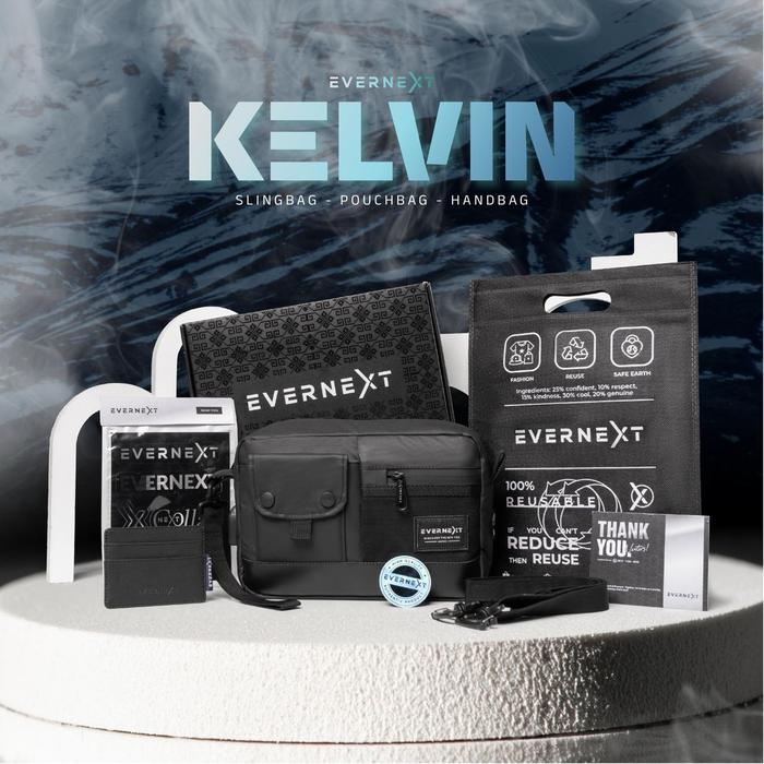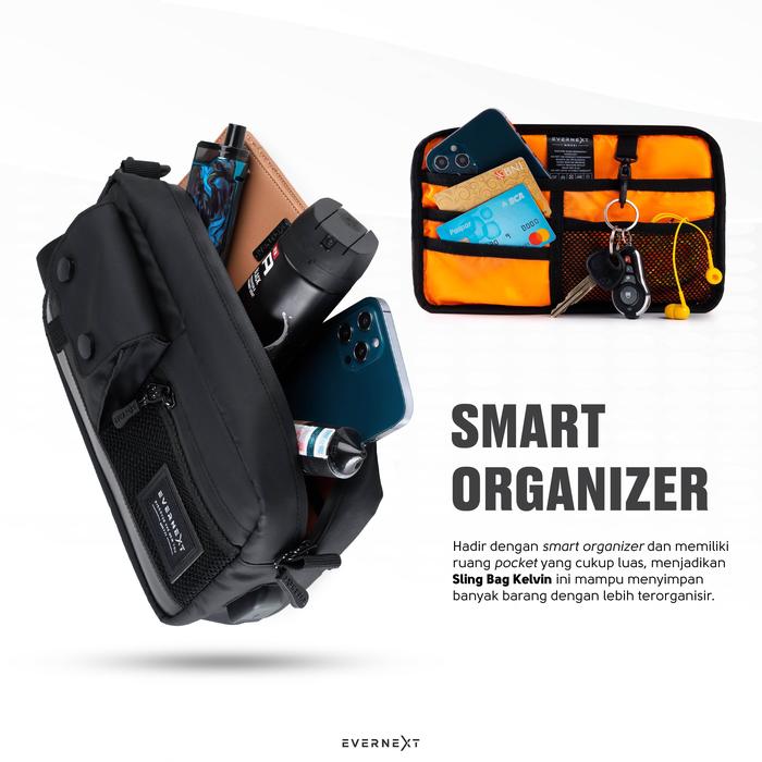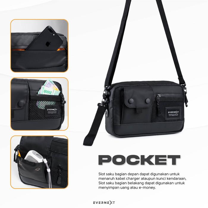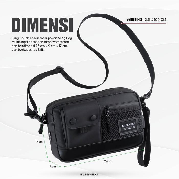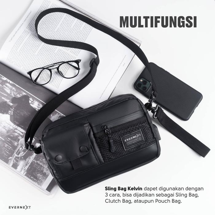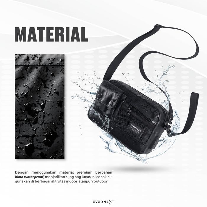 EVERNEXT TAS SELEMPANG PRIA ANTI AIR SLINGBAG MULTIFUNGSI HITAM PRIA POUCH BAG WATERPROOF PRIA WAISTBAG BAG CALVIN PRIA TERBARU - BLACK