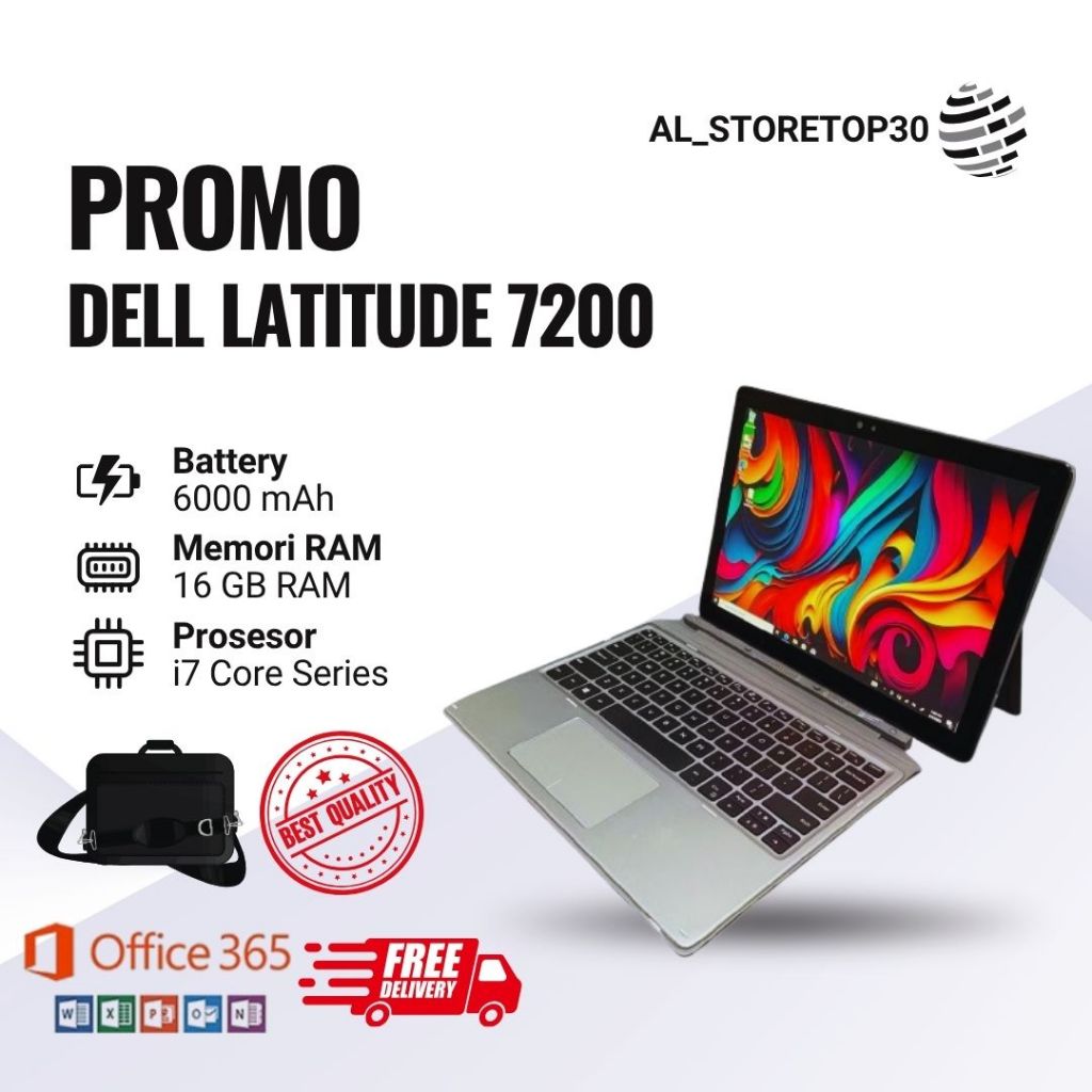 LAPTOP TOUCHSCREEN 2 IN 1 DELL LATITUDE 7200 RAM 16 SSD 256 GB INTEL CORE I7 GEN 8 SECOND ORI