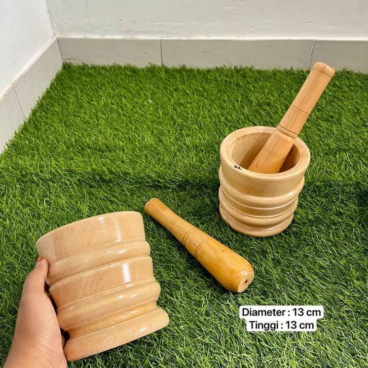 Lumpang Kayu Mahoni 1 Set Ukuran Kecil + Tumbukan Alu Motif Coklat Dan Natural Kitchenware