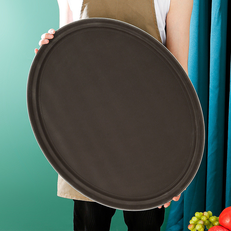 Nampan Saji Makanan Tray Plastik Baki Anti Slip Tidak Licin BULAT/KOTAK Alas Karet Multifungsi TP02