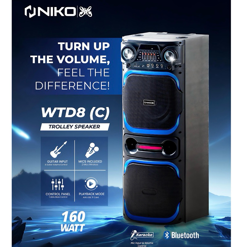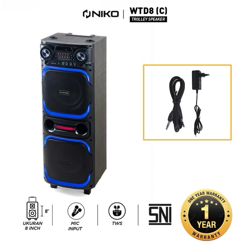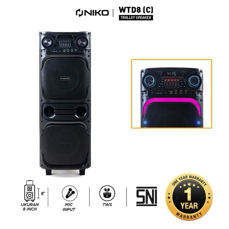 [Star] Speaker NIKO WTD8C 2mic wireles Double speaker 8inch X2 speaker portabel speaker bluetooth speaker niko terbaru