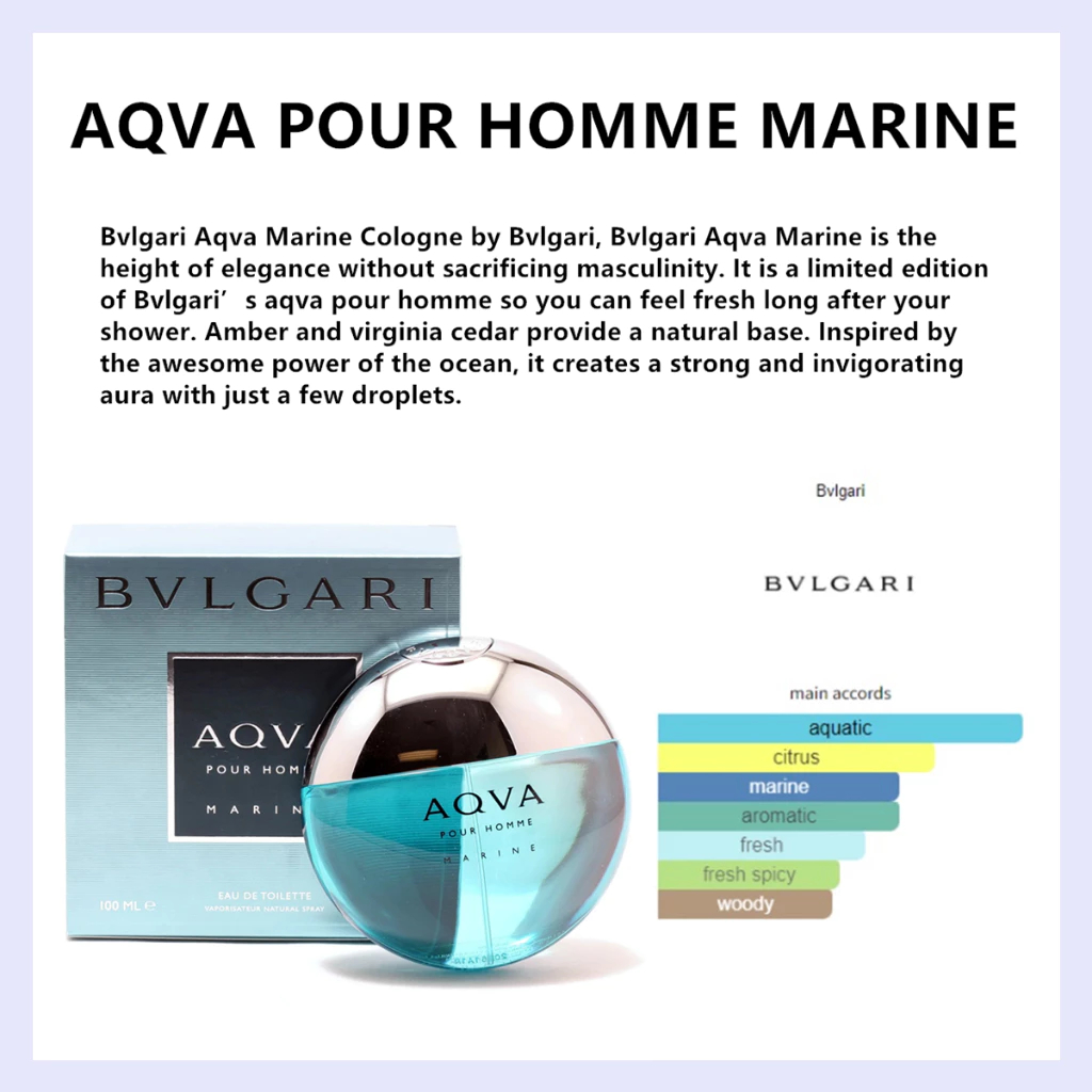 【100% Original】 BVLGARI AQVA POUR HOMME Woody EAU DE TOILETTE/AQVA POUR HOMME MARINE EAU DE TOILETTE SPRAY 100ML
