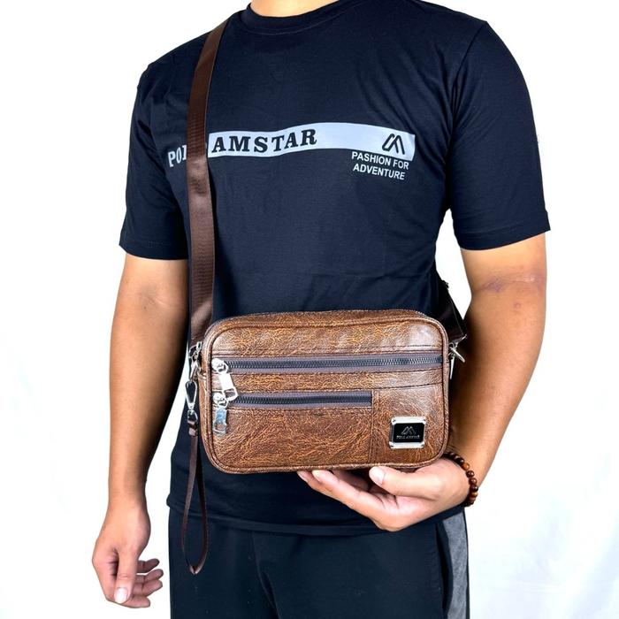 TAS SELEMPANG TAS HANDBAG TAS TANGAN PRIA WANITA ANTI AIR SLINGBAG WAISTBAG - HITAM