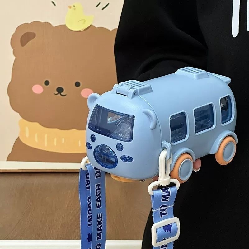 (SR) Botol Minum Anak Sekolah Karakter Lucu Sedotan Tali Panjang Viral 500ml