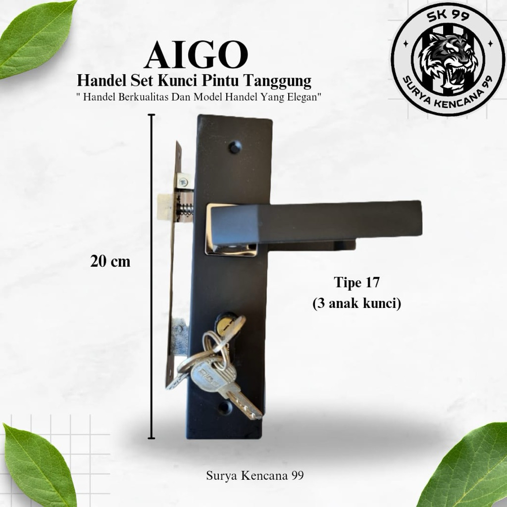 Gagang Handel Handle Kunci Pintu Set Aigo Tanggung 20 cm Black