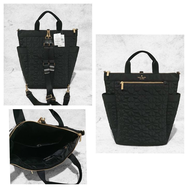 Tas KS Spade Flower Quilted Nylon Convertible Backpack Black Size 38/27x38x12cm