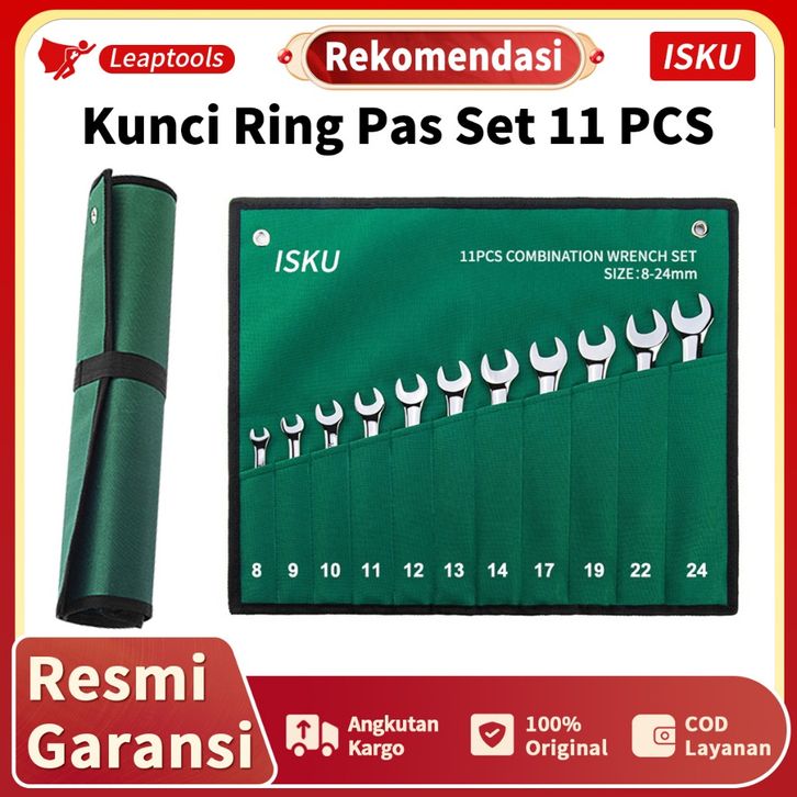 Isku Kunci Shok Set Isku kunci Ring Pas Set 8-24mm Set 11 pcs Kunci Ring Pas Set Tools Chrome Vanadium Combination Wre