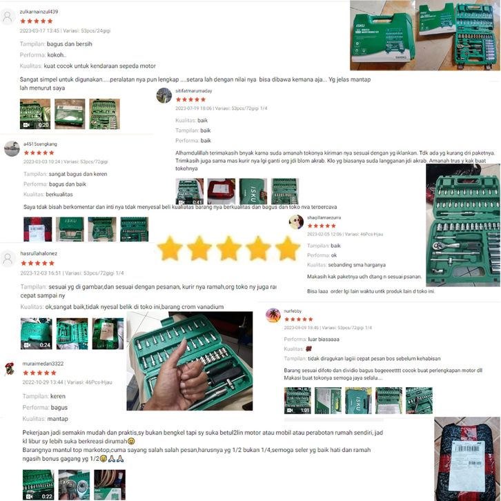 Isku Kunci Shok Set ISKU Kunci Shock Set 53pcs 24gigi/ Full Lengkap Socket Toolkit 53 PCS Mata Sok/toolkit set lengkap