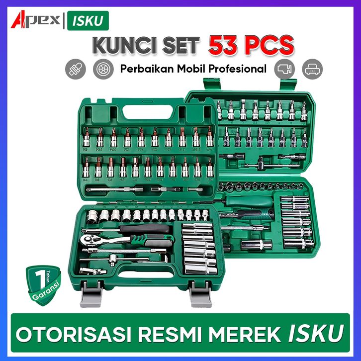 Isku Kunci Shok Set ISKU Kunci shock set 53 pcs 1/4 "Original/kunci shok full set isku lengkap/kunci sok lengkap set cv