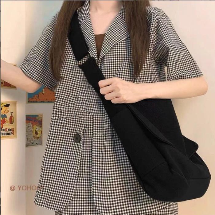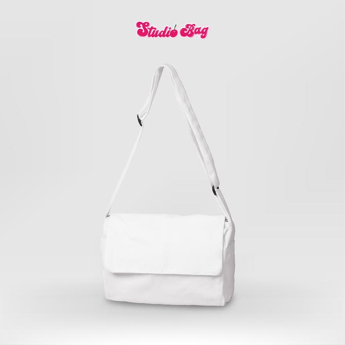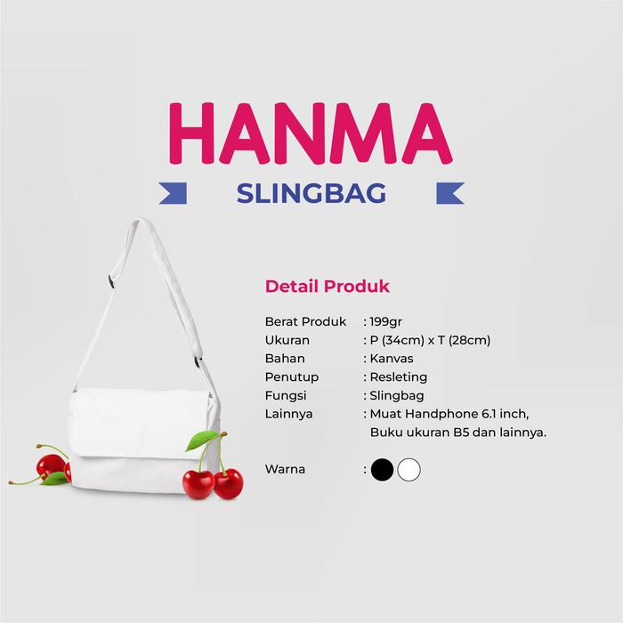 HANMA SLING BAG TAS SELEMPANG CANVAS POLOS WANITA PRIA REMAJA ELEGANT HITAM KANVAS KOREAN STYLE STUDIO BAG SLINGBAG - HITAM, STANDAR