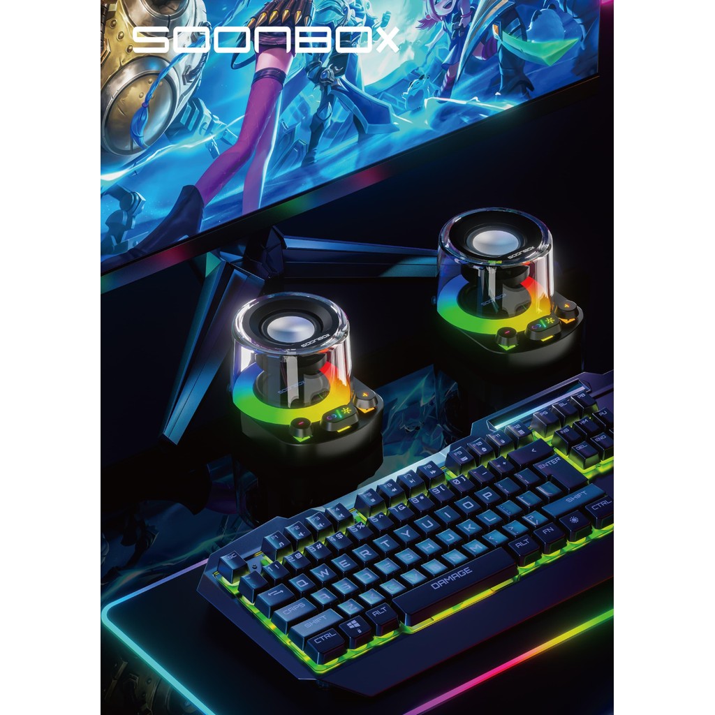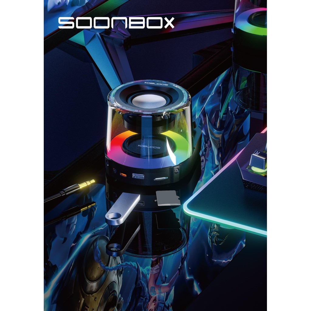 SOONBOX S301 Mini Speaker Bluetooth Portable 5.3 Wireless 10W Bass HifI 360 Sound + LED Light Mechanical Button