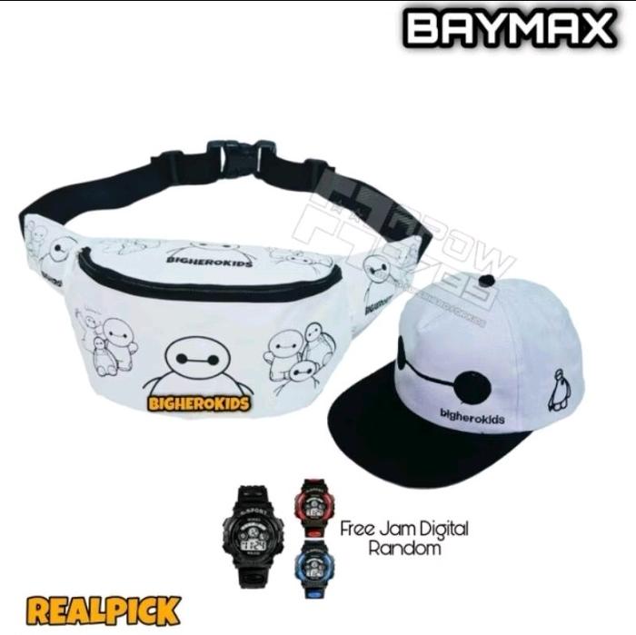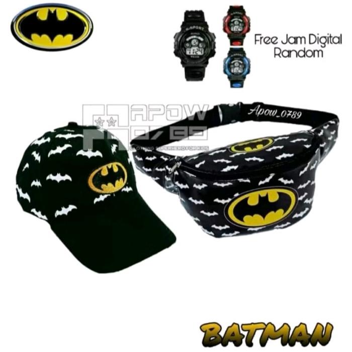 PAKET LUCU 3 IN1 TAS ANAK TAS SELEMPANG WAISTBAG ANAK LAKI LAKI TAS BAHU ANAK KARAKTER FREE TOPI BORDIR DAN JAM TANGAN GISHOCK - 3IN1 BATMAN LOGO, USIA 2-10 TAHUN