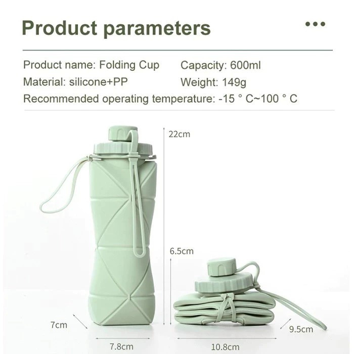 Compact Botol 600ml Reusable Silicone Water Air Minum Lipat Travel Silikon Lipat Ketel Anti Bocor