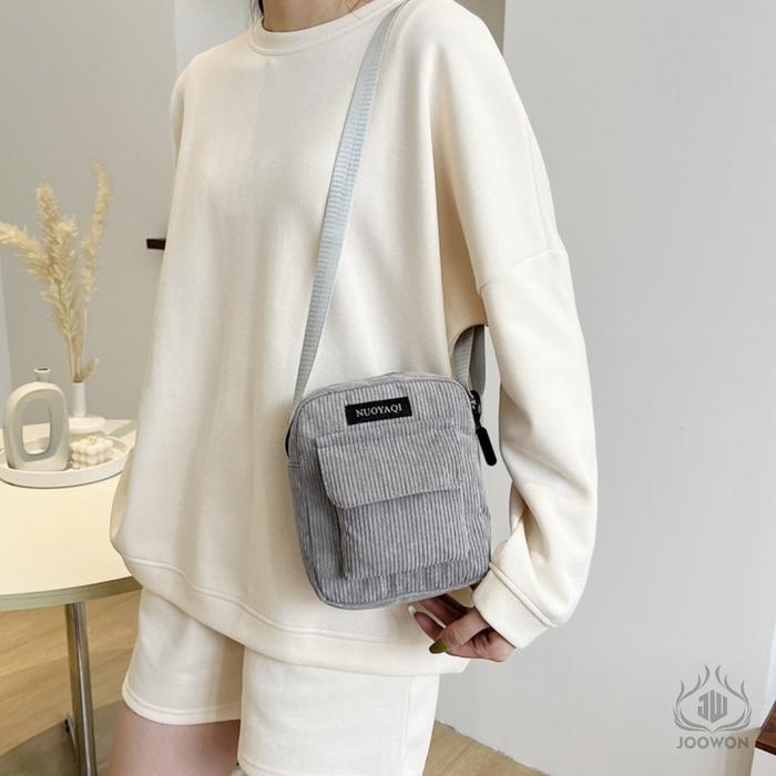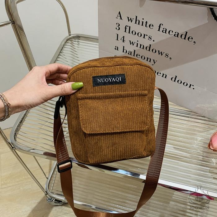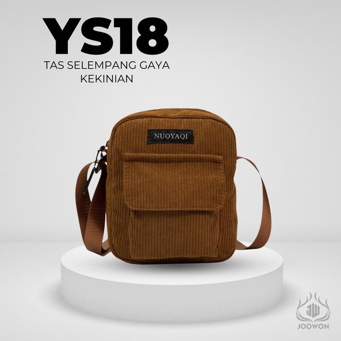 JOOWON TAS SELEMPANG UNISEX BAHAN CORDUROY SLINGBAG CORDUROY TAS MASSENGER MINI PRIA - YS18 - COKLAT TUA