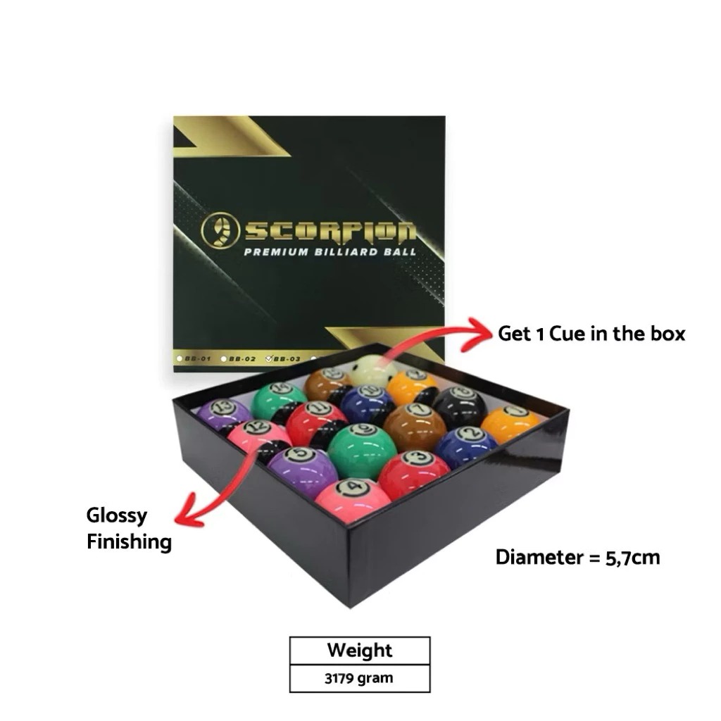 Bola Biliard Biliar Ball Best Quaility merk Scorpion Premium Segitiga BB04 Uk 2 1/4 9 Feet TERMURAH!