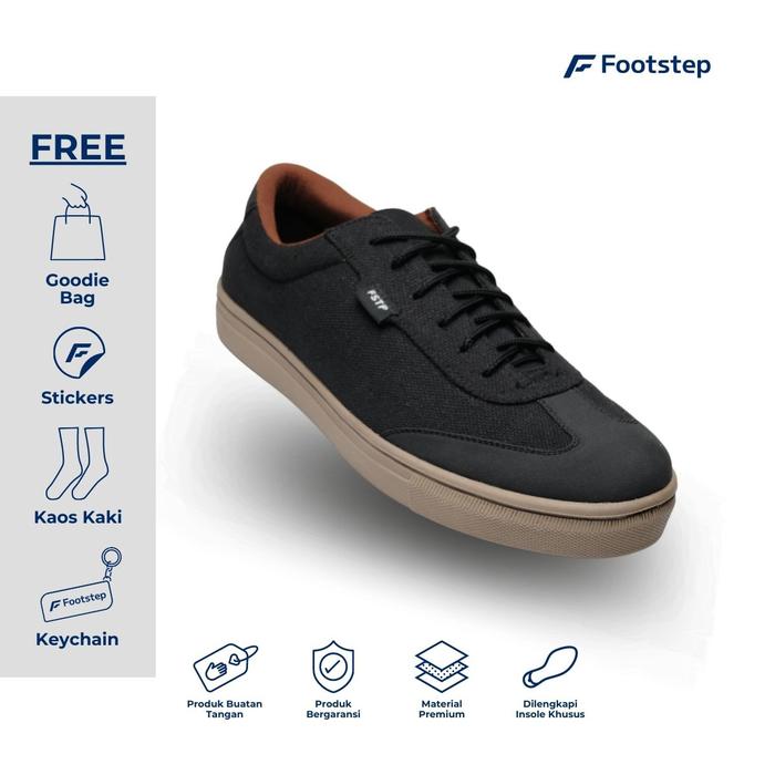 SEPATU COWOK FOOTSTEP ATOM BLACK CASUAL SHOES PRIA SNEAKERS SNEKERS - ATOM BLACK, 39