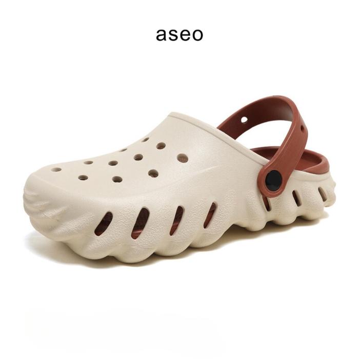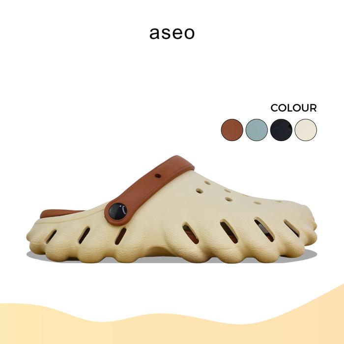 ASEO SANDAL PRIA WANITA DEWASA BAIM CLOG TERBARU LEBARAN 2025 IMPORT SANDAL COWOK DEWASA KOREAN STYLE KARET RUBBER LUCU JELLY EMPUK ELASTIS H169 BLACK SENDAL - KHAKI, 36/37