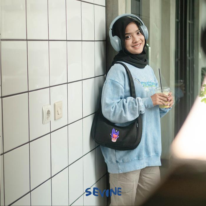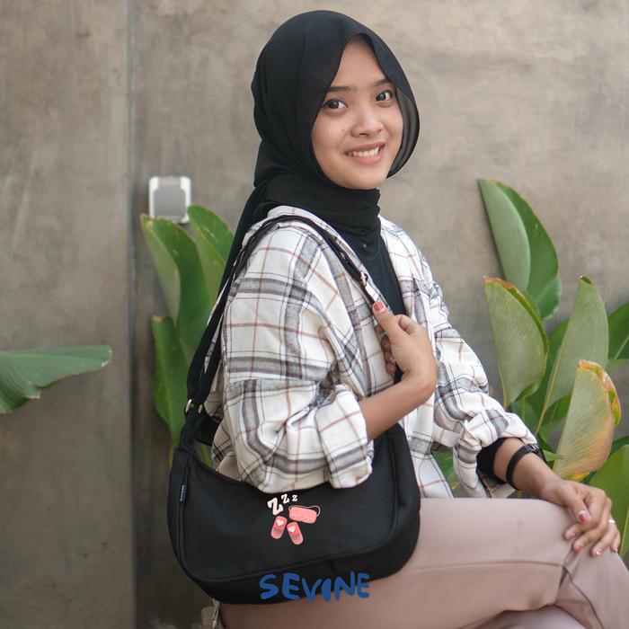 SEVINE LOUIS SLING BAG TAS SELEMPANG KANVAS HITAM RESLETING SHOULDER BAG - LOG PRIA PRIA - LOG1