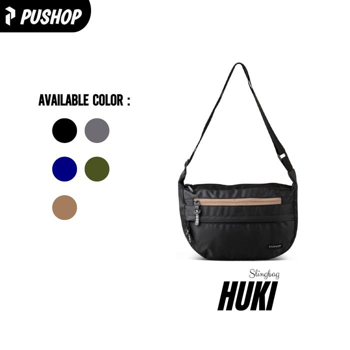 PUSHOP TAS SELEMPANG PRIA WANITA HUKI - SLINGBAG UNISEKS SLING BAG KASUAL KANVAS - HITAM