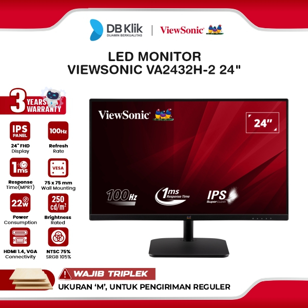 VIEWSONIC LED Monitor VA2432H-2 24" IPS FHD 100Hz 1ms HDMI VGA