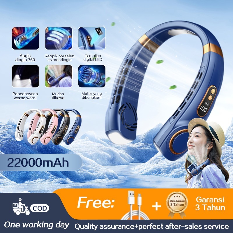 Kipas Angin Gantung Leher Portable 5-Speed Wind LED Display Tanpa Baling Baling Neck Fan Pencahayaan Warna-Warni / Kipas