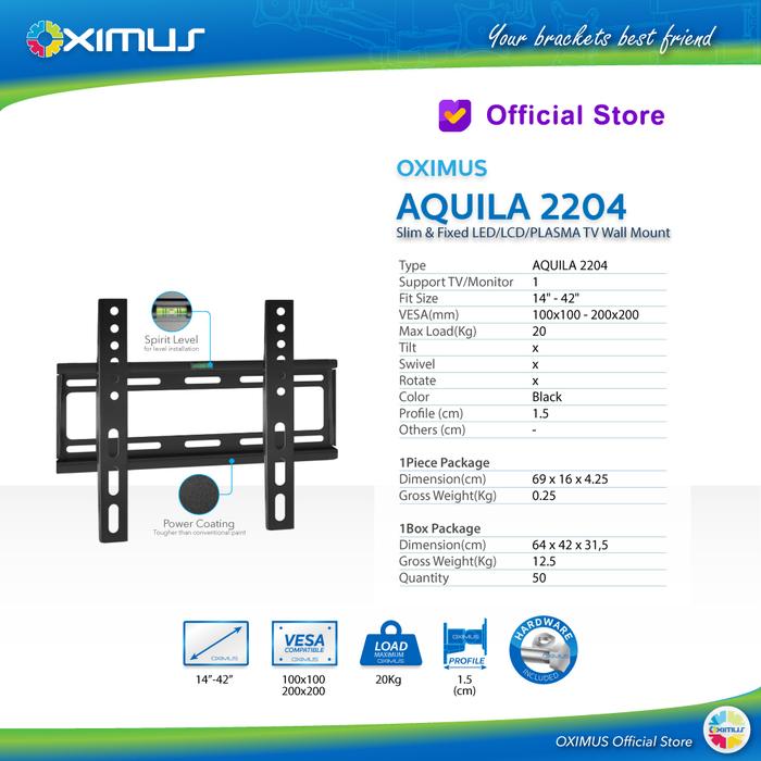 BRACKET TV Fix LCD LED TV 14" - 42" OXIMUS AQUILA 2204 Black Monitor - AQUILA 2204 Hitam