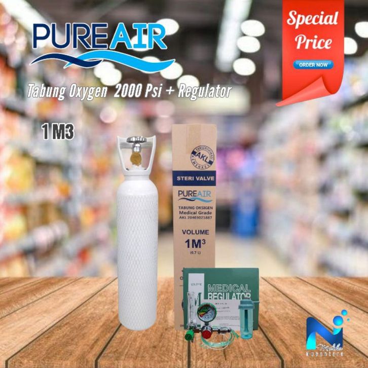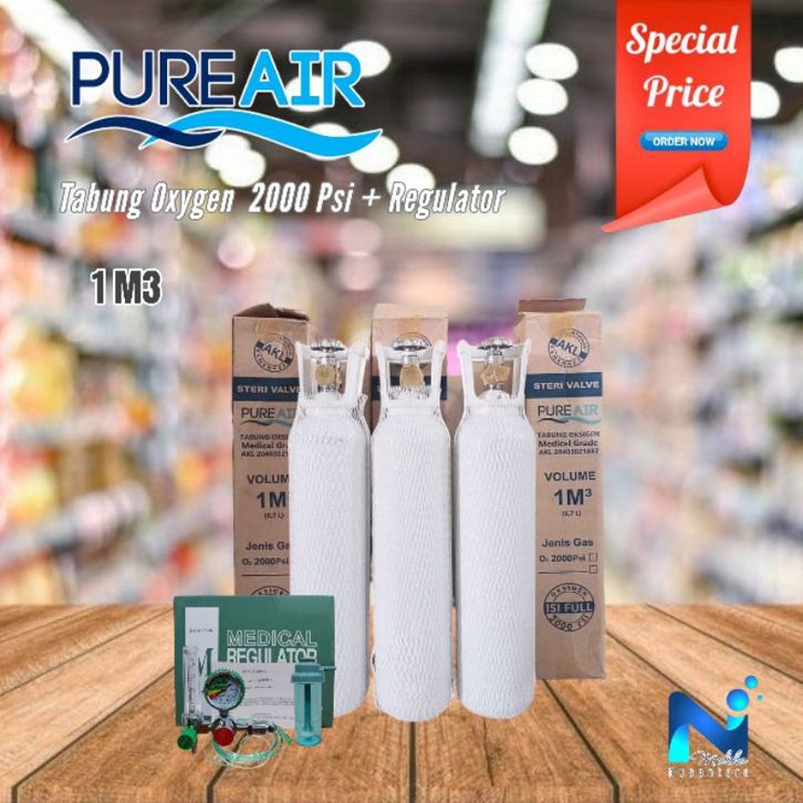 Tabung Oxygen + Regulator isi 2000 Psi - Tabung Oksigen Medical Grade 1M3 + Isi Siap Pakai Do1