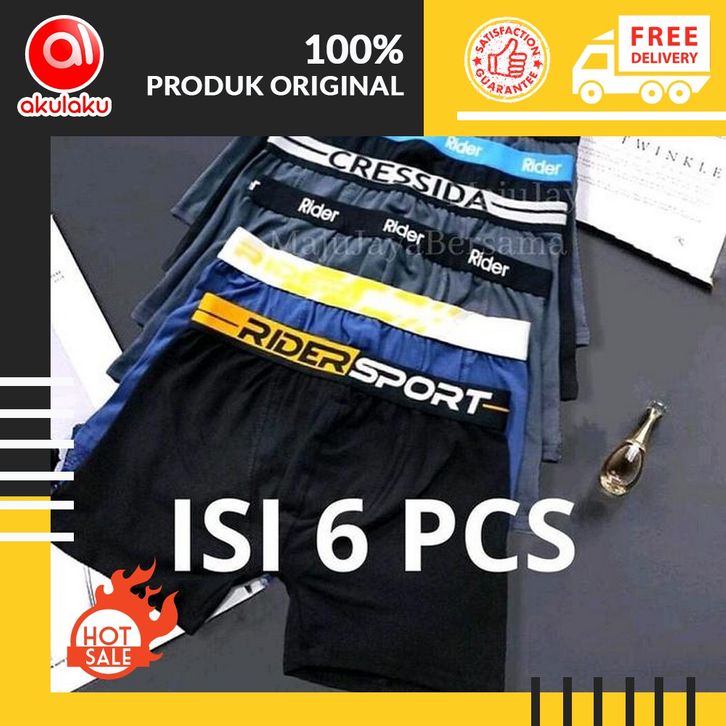 HOT ITEM ! PAKET HEMAT 6 PCS BOXER CELANA DALAM PRIA DEWASA KATUN HITAM KARET NYAMAN LEMBUT CDCOWOK - PAKET 3 PCS, M ORI