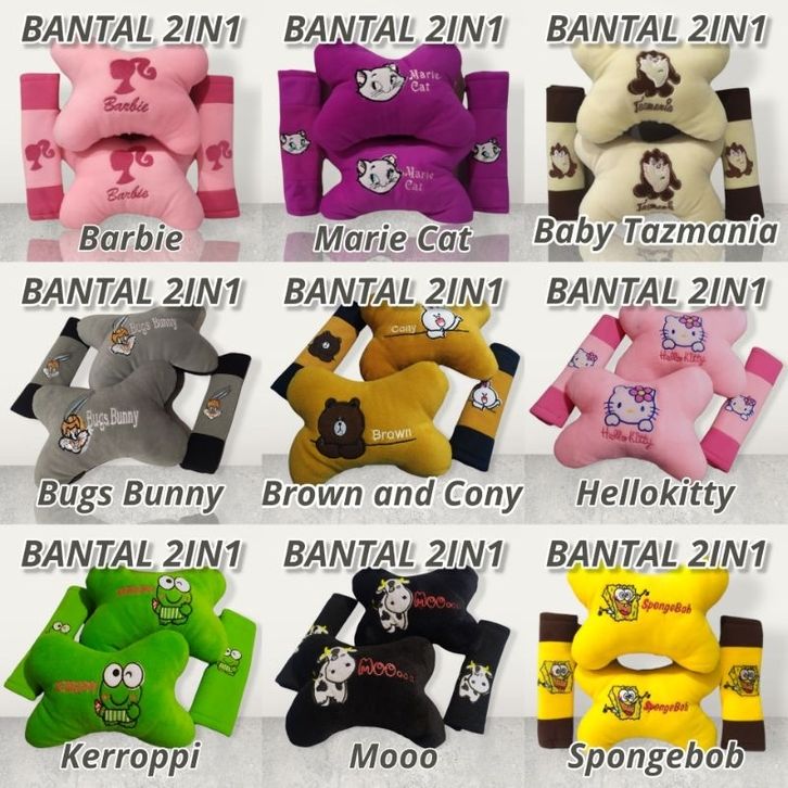 TERBARU bantal leher mobil set karakter kartun bantal mobil aksesories headrest car set 2in1 ihelb