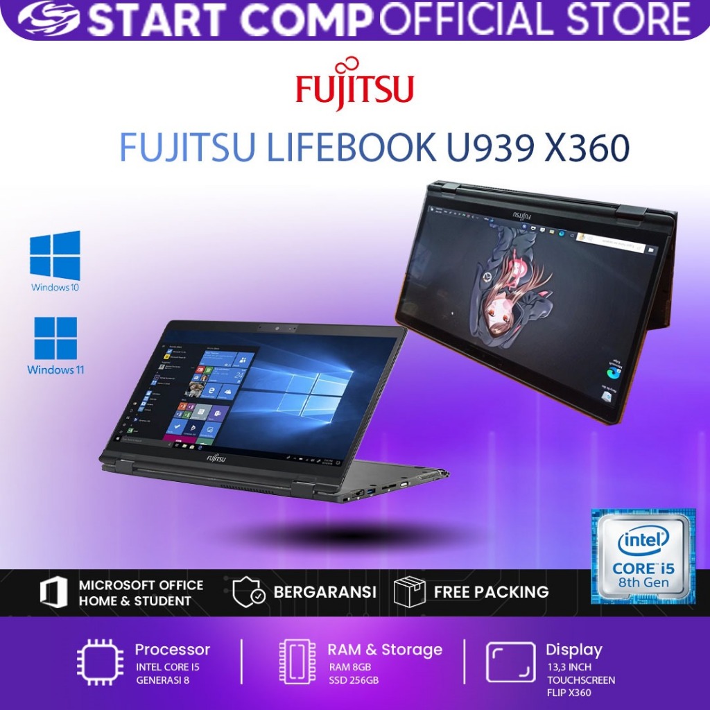 Laptop Fujitsu Lifebook U939 2n1 Core i5 Gen 8 | RAM 8GB | SSD 256GB | FULL HD Touchscreen With pen | Ringan & Tipis | Layar 13 Inch