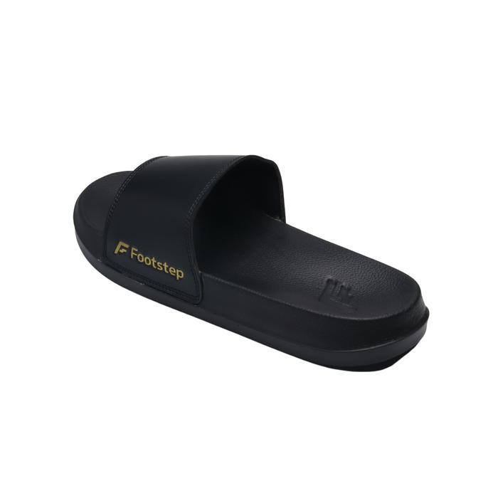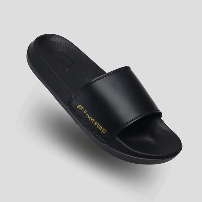 SENDAL COWOK FOOTSTEP PORTO BLACK SLIDE SANDAL SHOES PRIA SELOP KARET - HITAM, 39
