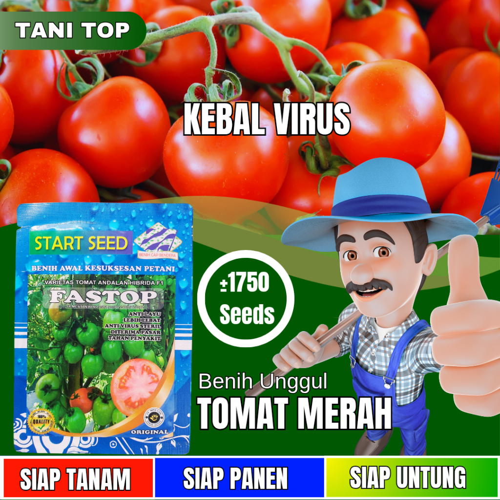 TANI T0P Benih Tomat FAST0P Hibrida F1 Bibit Unggul, Anti Layu Tahan Penyakit isi 5gram 1750 biji
