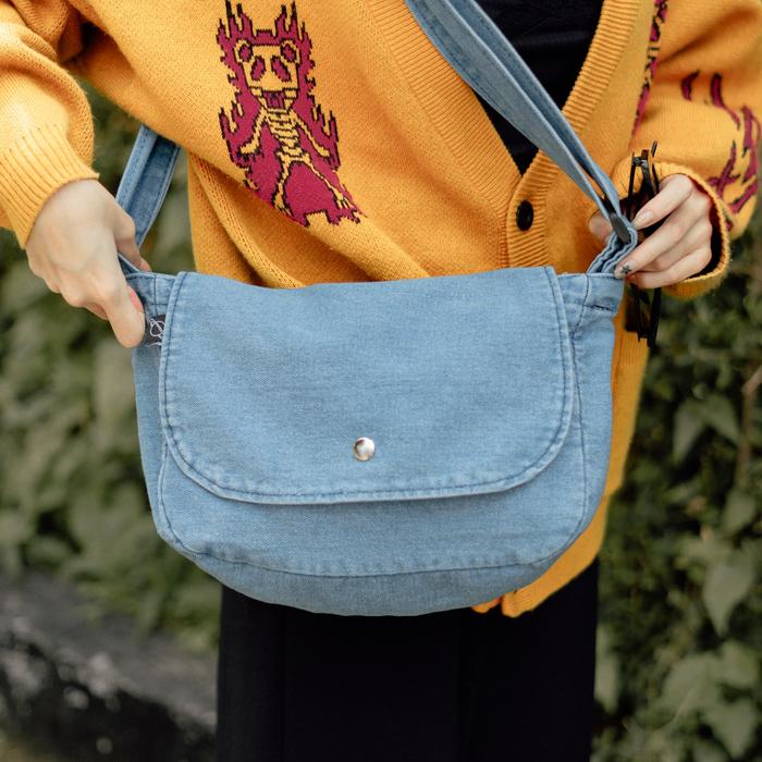 SLINGBAG JEANS TAS SELEMPANG DENIM POSTMAN MESSENGER PRIA WANITA SIMPLE - LIGHT BLUE